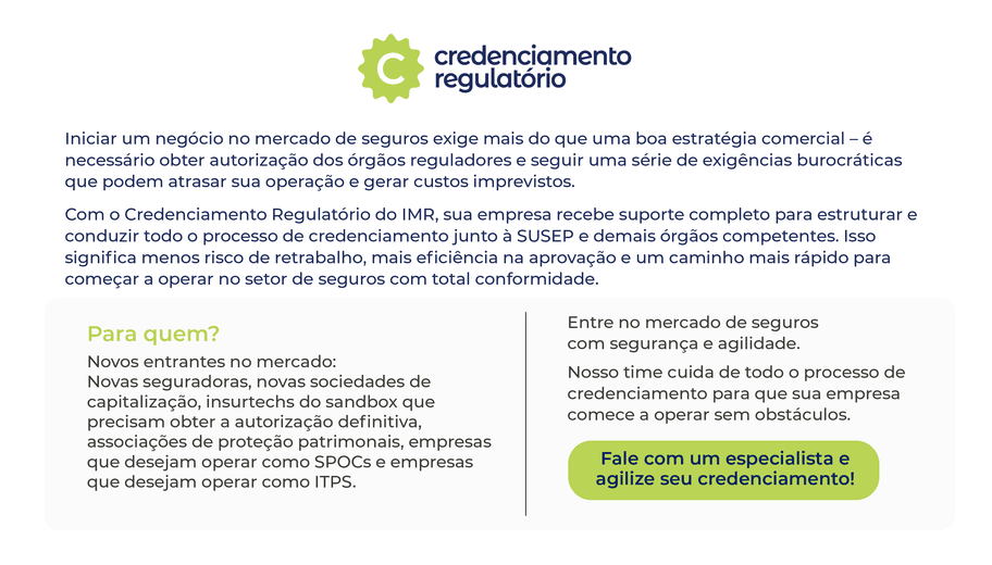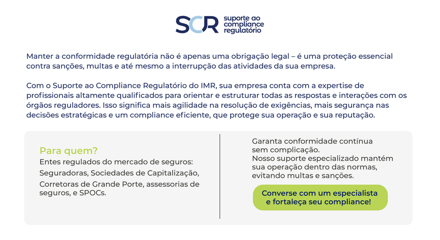 O IMR oferece soluções sob medida para cada estágio, garantindo que sua empresa não apenas cumpra as regras, mas use a regulação a seu favor para crescer e se destacar no mercado de seguros.